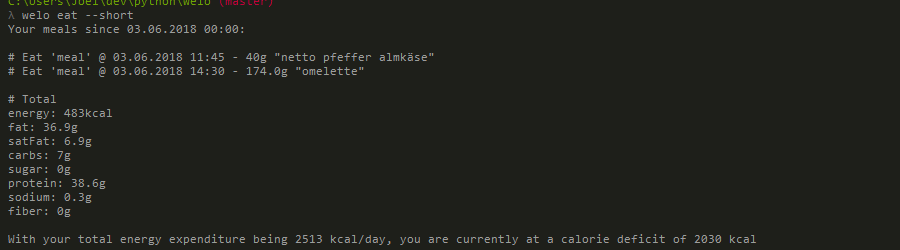 welo is a command line weight and calorie tracker application that I used extensively to track the results of my weight loss efforts. In 2018 this tool helped me lose ~25kg.